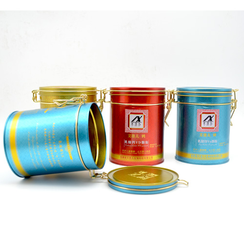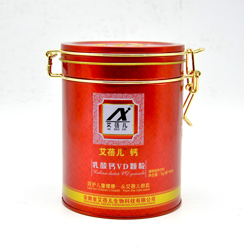 乳酸鈣顆粒鐵盒包裝定制 圓形鎖扣鐵盒包裝