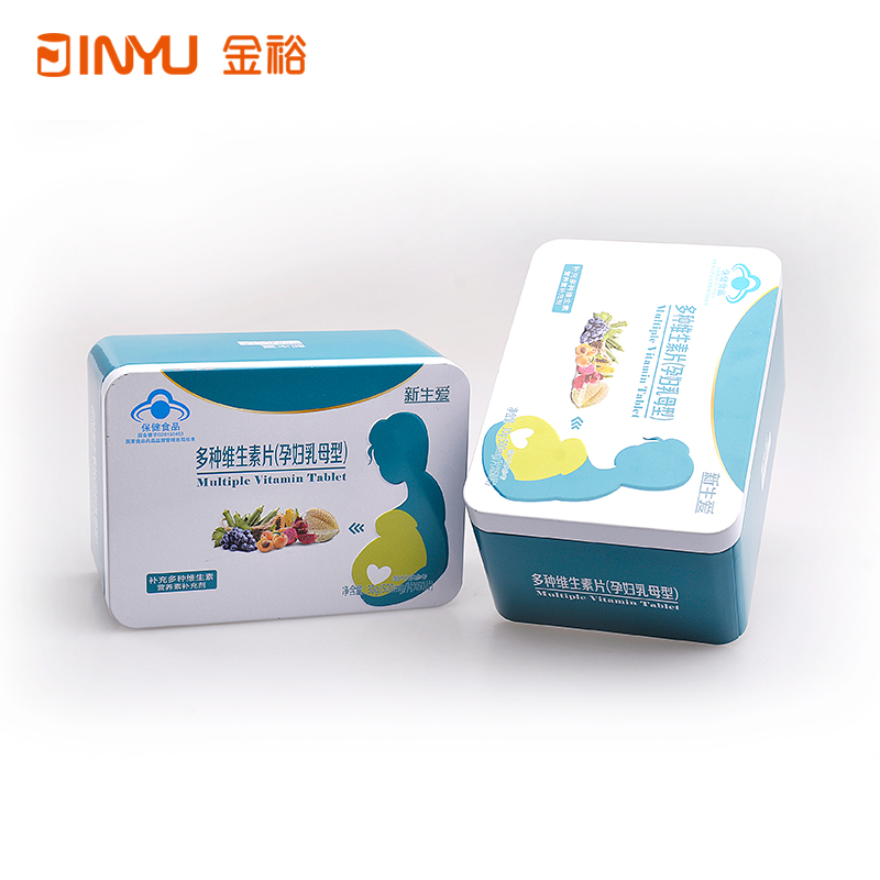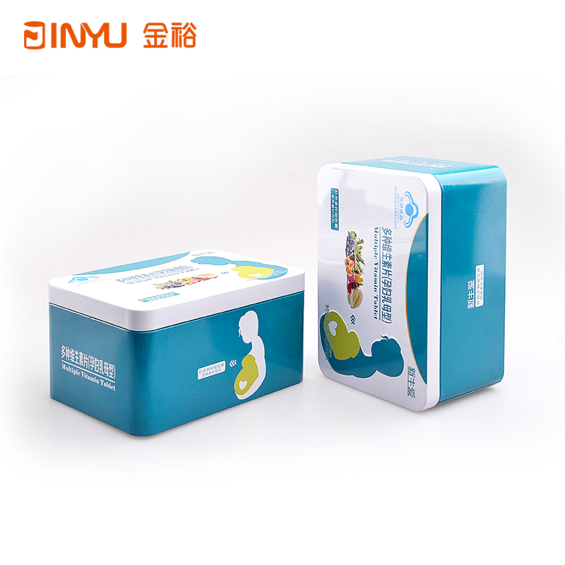 【產(chǎn)品簡(jiǎn)介】此款長方形鐵盒是用來裝保健食品的(維生素片),該保健食品鐵盒共用2款不同圖案設(shè)計(jì),采用內(nèi)縮口盒身設(shè)計(jì),盒底部采用扣底結(jié)構(gòu),整體算是比較美觀大方的。這樣一款精美的包裝鐵盒,將會(huì)是產(chǎn)品銷量的助推器。