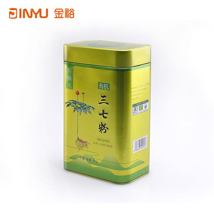【產(chǎn)品簡介】此款鐵盒是用來裝中藥材-三七粉的,是一款受眾多保健食品廠商青睞的鐵盒包裝,其先后應(yīng)用過多家公司、多種產(chǎn)品的產(chǎn)品包裝,例如另一款丹參粉鐵盒,其內(nèi)部采用二次加密易拉紙蓋,保障了產(chǎn)品的密封性與美觀度。