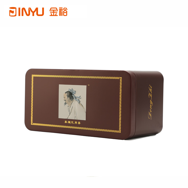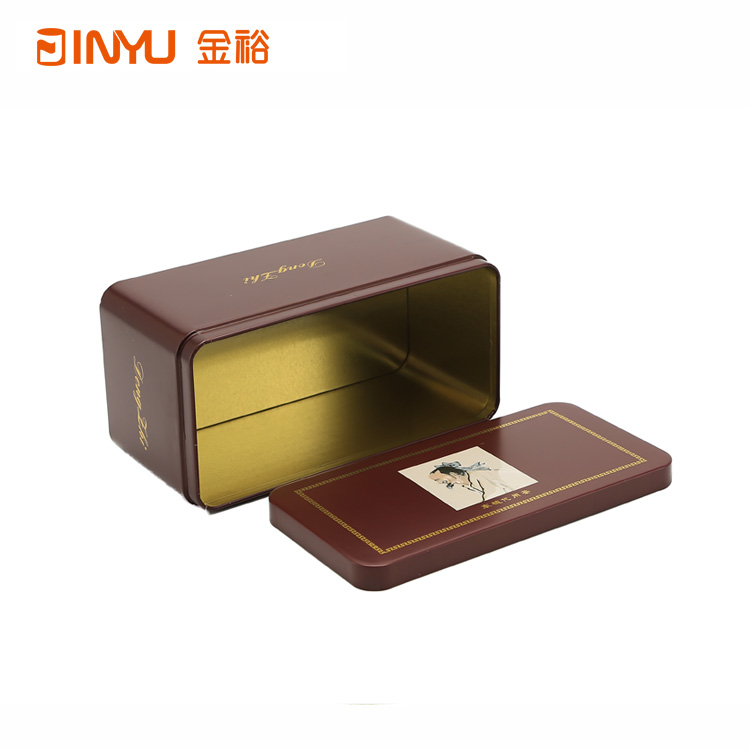 【產品簡介】長方形茶葉鐵盒包裝,該款鐵盒是用來裝代用茶的,鐵盒色調選用暗紅色搭配方形鐵盒,凸顯該款鐵盒簡單大氣,工藝美感十足,這款鐵盒我司現(xiàn)有模具生產,有定制鐵盒需求的朋友可以聯(lián)系我們。