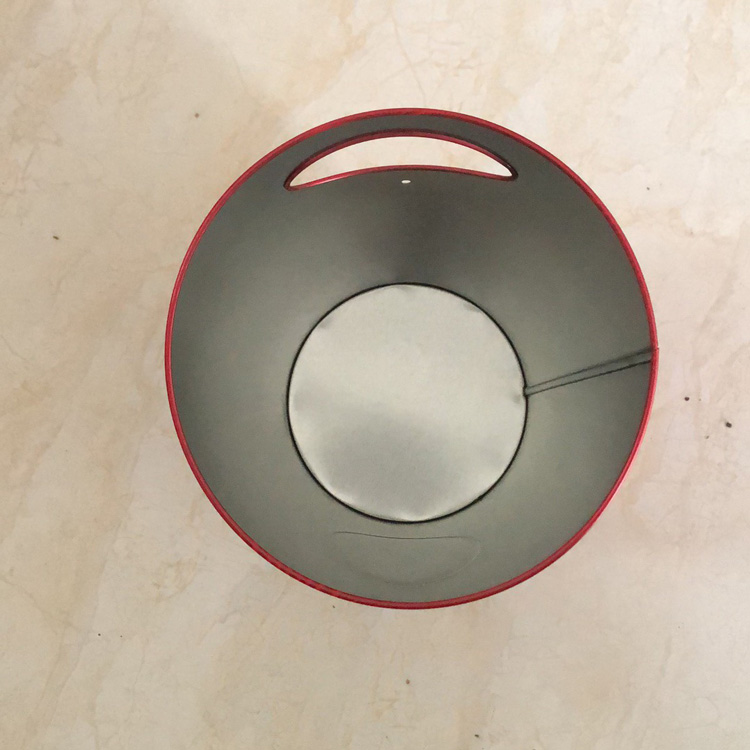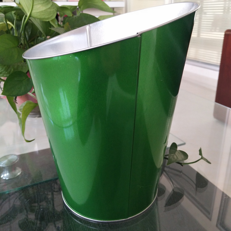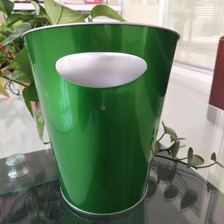 【產(chǎn)品簡介】這款金屬手提桶是新開模具做的,款式獨特吸引人,底部直徑小于口徑,背面設(shè)有提手裝置,更靈活方便。
