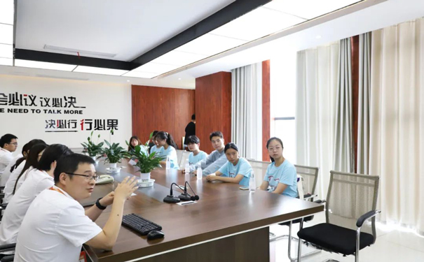 在會(huì)上,學(xué)生代表根據(jù)自身所學(xué)專業(yè)知識(shí)與員工們互動(dòng)交流,雙方就職業(yè)病防治體系、科技創(chuàng)新成果轉(zhuǎn)化、知識(shí)產(chǎn)權(quán)保護(hù)、大學(xué)生就業(yè)創(chuàng)業(yè)活動(dòng)開展等話題進(jìn)行了深入討論。會(huì)后,實(shí)踐團(tuán)調(diào)研參觀了紅色生產(chǎn)車間。