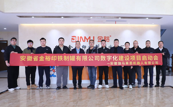 11月5日下午,安徽省金裕印鐵制罐有限公司與安徽伽馬萊恩機(jī)器人有限公司(以下簡稱“伽馬萊恩”)聯(lián)合舉辦的數(shù)字化轉(zhuǎn)型啟動(dòng)儀式在公司會(huì)議室隆重舉行。這標(biāo)志著金裕制罐在數(shù)字化發(fā)展道路上邁出關(guān)鍵一步,開啟企業(yè)高質(zhì)量發(fā)展的嶄新篇章!